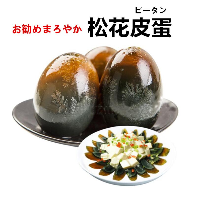 ピータンはアヒルの卵を発酵させて作られる中国の伝統的な加工食品です。色味が黒く、匂いも独特であるため、好き嫌いが分かれる食品ではありますが、様々な料理やご飯との相性も良く、栄養価も高い食品なのです。日本にある中国物産店で多くのお店で取り扱いがあります。写真は旭日松花ピータンになります。以下商品情報です。